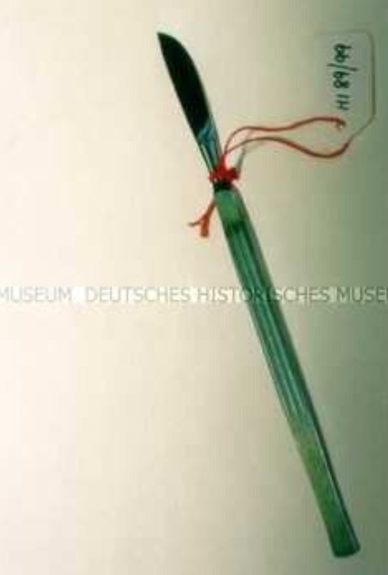 Das Skalpell wurde für die Hautschnitte am Bauch verwendet und besteht aus aus rostfreien Stahl. Primär wurde es in den 1970er und 1980er Jahren verwendet.
